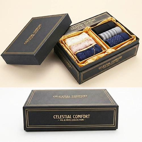 Slide Box Packaging: In this, there is an inner tray that slides out from the box of the body. The tray comes out from the outer shell of the box body, and it gives a very luxurious presentation to your undies.